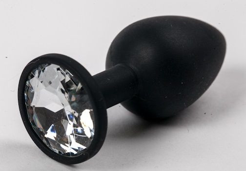 Черная силиконовая анальная пробка с прозрачным стразом - 7,1 см.