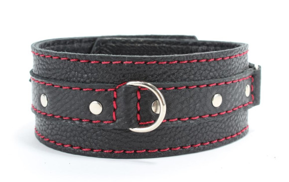 - Черный ошейник увеличенного размера с красной строчкой и кольцом