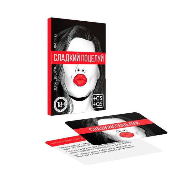 И как же эта игра меня научит? Очень просто! Для начала разложите карточки рубашкой вверх в четыре ряда, затем переворачивайте по очереди две карточки. Если карточки совпали, заберите их себе, прочитайте вид поцелуя и инструкцию, а затем приступайте к тренировке с любимым человеком. Если карточки не совпали, тогда передайте ход второй половинке. В комплекте: 20 карт, правила.