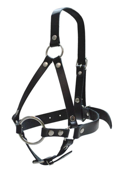 Кляп-рамка со сбруей на голову из черных кожаных ремешков отзывы