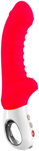 Красный вибромассажёр Tiger… О, это имя дано ему неслучайно! Игрушка цвета страсти с рельефными полосками по всей длине силиконового тельца умеет урчать – мощно, как дикий зверь, и бесшумно одновременно.