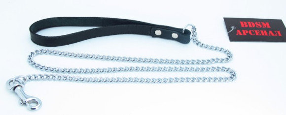Металлический поводок с кожаной петлёй