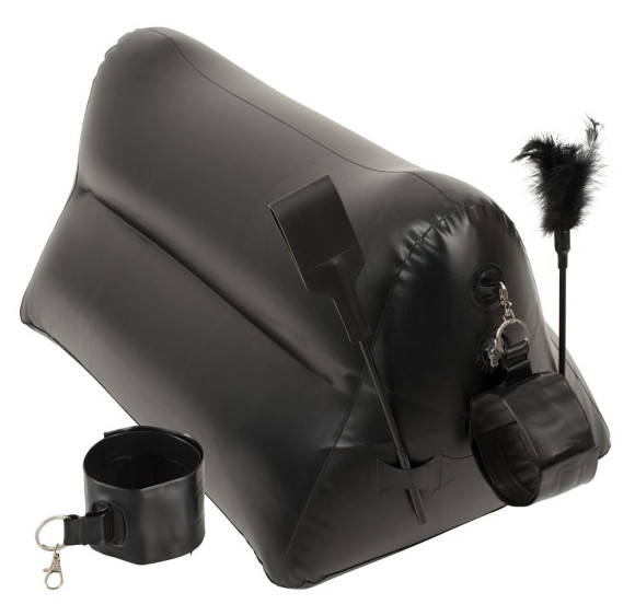 Надувная любовная подушка с наручниками, шлепалкой и пуховкой для увлекательных игр в неволе. Портативная, ее можно брать куда угодно и быстро надуть. Любовная подушка быстро надувается и поддерживает множество положений для совместного секса. Входящие в комплект наручники легко крепятся по бокам с помощью карабинов. В комплекте: любовная подушка, наручники, шлепалка, пуховка.
